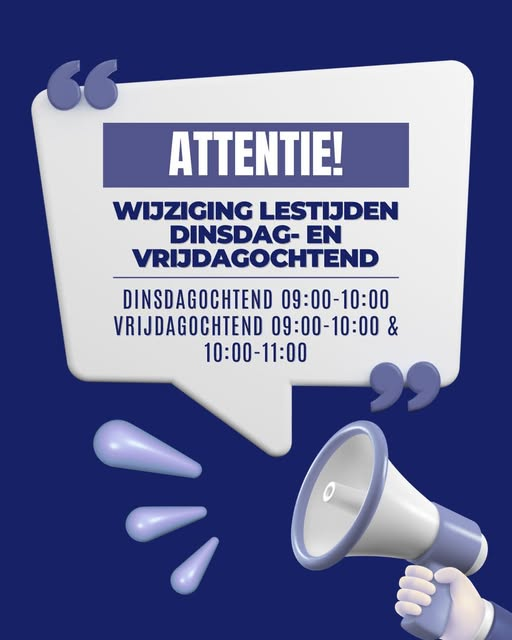 Met ingang van dinsdag 24 februari en vrijdag 27 februari 2026 is de lestijd voor volwassenen gewijzigd